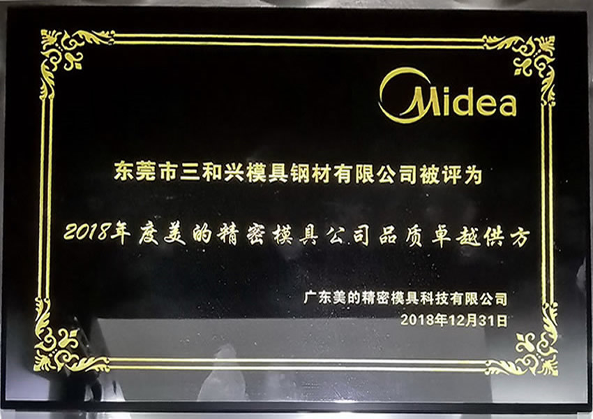 美的品質卓越供方證書