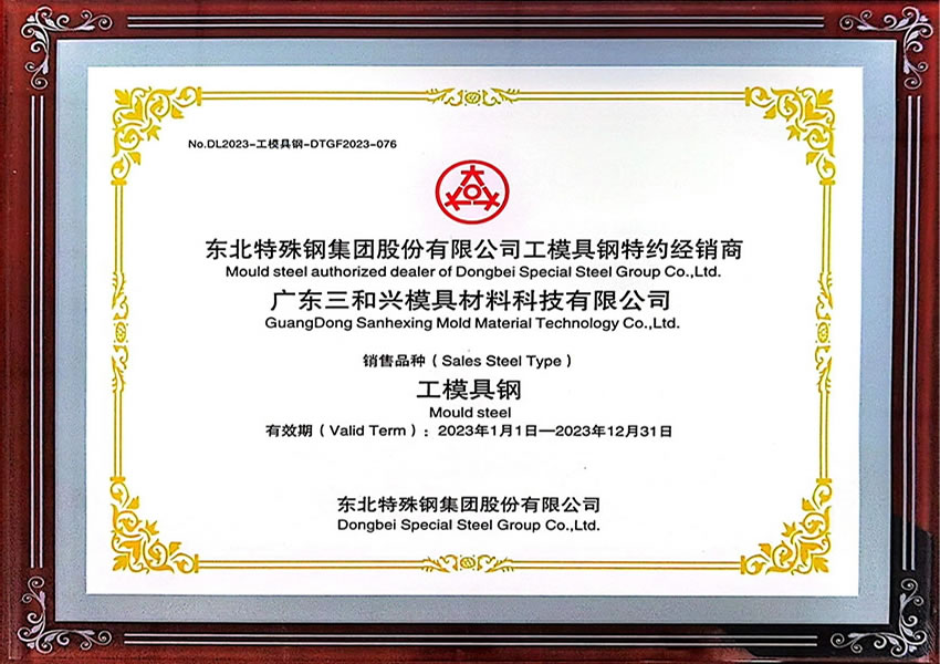 東北特鋼特約經銷商證書-廣東2023